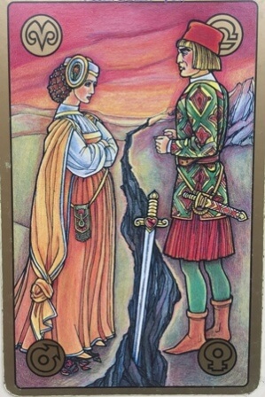 A képen egy férfi és egy nő látható, közöttük egy szakadék húzódik, és ha ez még nem lenne elég, akkor egy kard is szétválasztja őket.