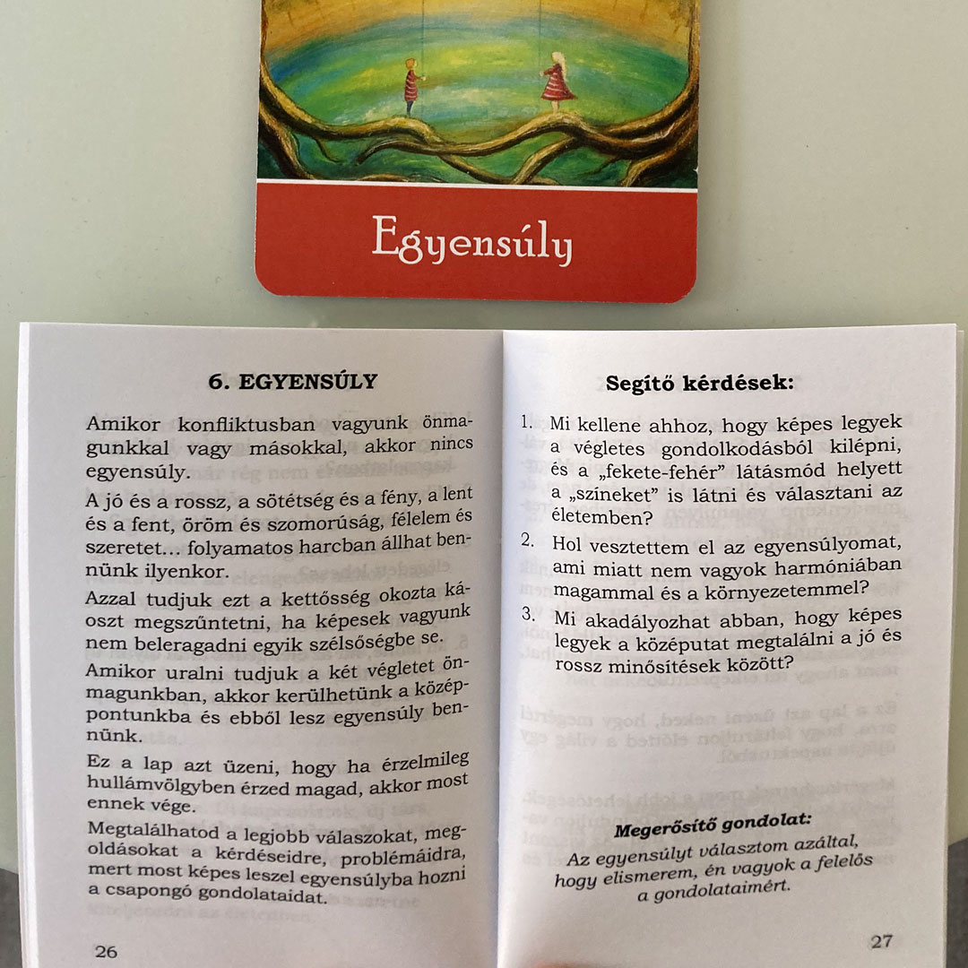Ehhez segítséget nyújt egy magyarázó kis könyv, amiben van egy mélyítő gondolatsor, felismeréseket adó kérdések és egy megerősítő gondolat.